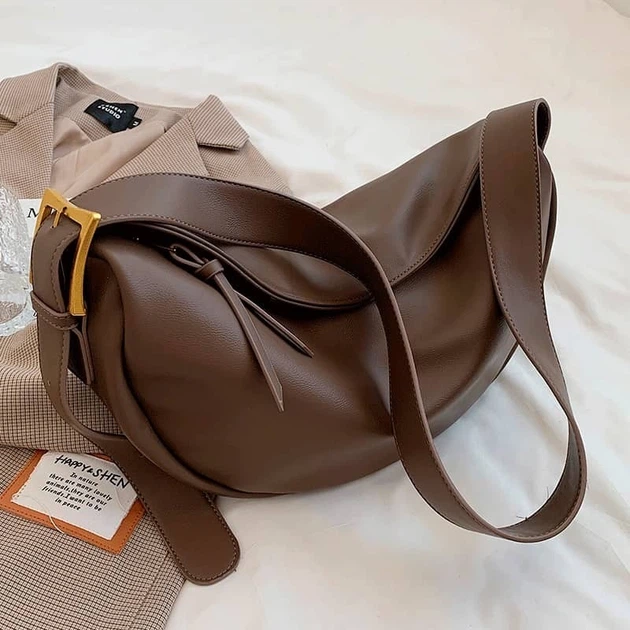 Женская вместительная сумка-бананка коричневая