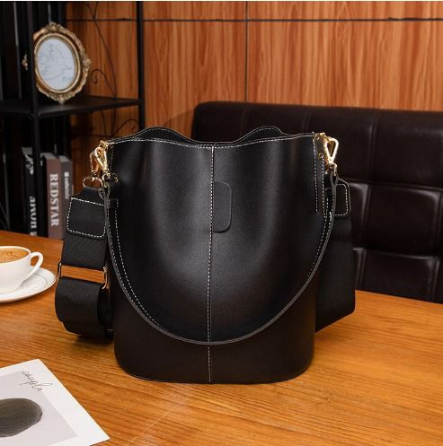 Сумка большая тоут ведро на широком ремне через плечо, цвет черный