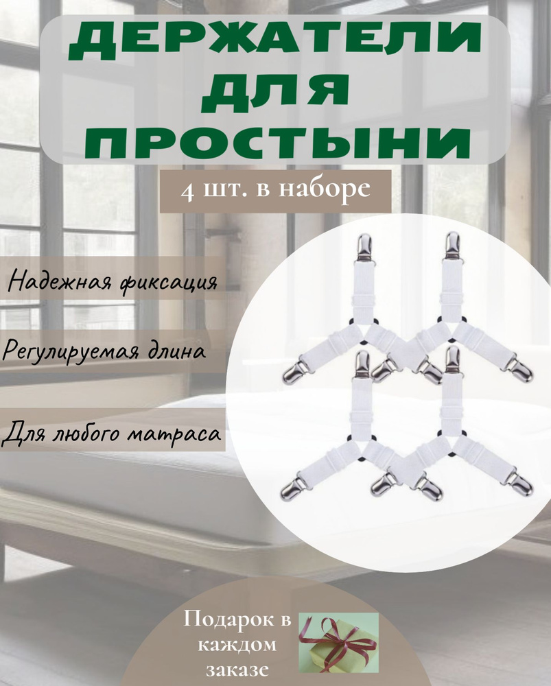 Держатели для простыни резинки тройные / Фиксаторы 4.шт купить по